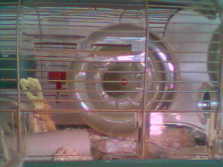 BACK TO INDEX Main evening quarters: Jamy's favorite exercise tool! She runs a lot of miles every day. Just to keep up her figure!