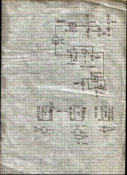 Ohhh, I almost forgot to mention that CMOS chips must be used in stead of TTL ones. These different characteristics of CMOS (high input resistance, low power to name just two) are critical in this design. Believe me, I should know, after soldering a test with CMOS which worked, I then build a proper one on construction board. But then I used a TTL equivalent... Needless to say, after many hours I noticed it, it was the CMOS/TTL thing.